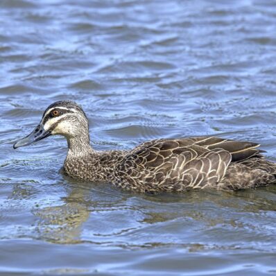 Dit is de Wenkbrauweend (Anas superciliosa), een zeevarende grondeleend die voorkomt in de warme wateren rondom Australië en Nieuw-Zeeland. De Maori naam voor deze eend is “Pãrera.”